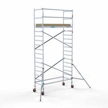 - Das Rollgerüst ist aus hochwertigem, leichtem Aluminium gefertigt, so dass der Aufbau ein Kinderspiel ist und der Materialtransport für die aufbauende Person keine Belastung darstellt.