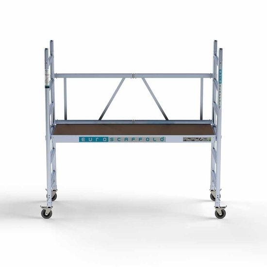 Dieses Zimmergerüst hat eine Standard-Arbeitshöhe von 3 Metern und kann mit zusätzlichen Produkten bis auf maximal 7,5 Meter erweitert werden. Es ist unser beliebtestesZimmergerüst für Arbeiten im und am Haus und dort, wo Sie in Zukunft höher hinaus wollen. Dieses Gerüst von Euroscaffold hat eine Tragfähigkeit von 450 kg, ist leicht zu bewegen, aufzustellen und zusammenzulegen. Damit ist das Gerüst ideal für Heimwerker- und professionelle Arbeiten, sowohl im Haus als auch im Freien.