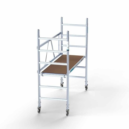 Das Gerüst hat eine Breite von 75 cm und eine Länge von 190 cm. Dank seiner kompakten Abmessungen ist das Zimmergerüst auch leicht zu verstauen, da es nicht viel Platz braucht. Wie unsere anderen Gerüste entspricht das Gerüst der Norm NEN-EN 1004 und ist TÜV-zertifiziert.