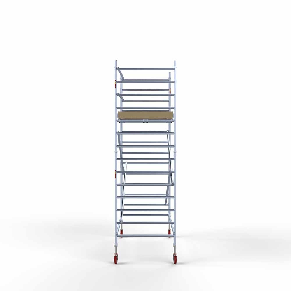 - Das Rollgerüst ist aus hochwertigem, leichtem Aluminium gefertigt, was den Aufbau und den Materialtransport wesentlich schneller und einfacher macht.