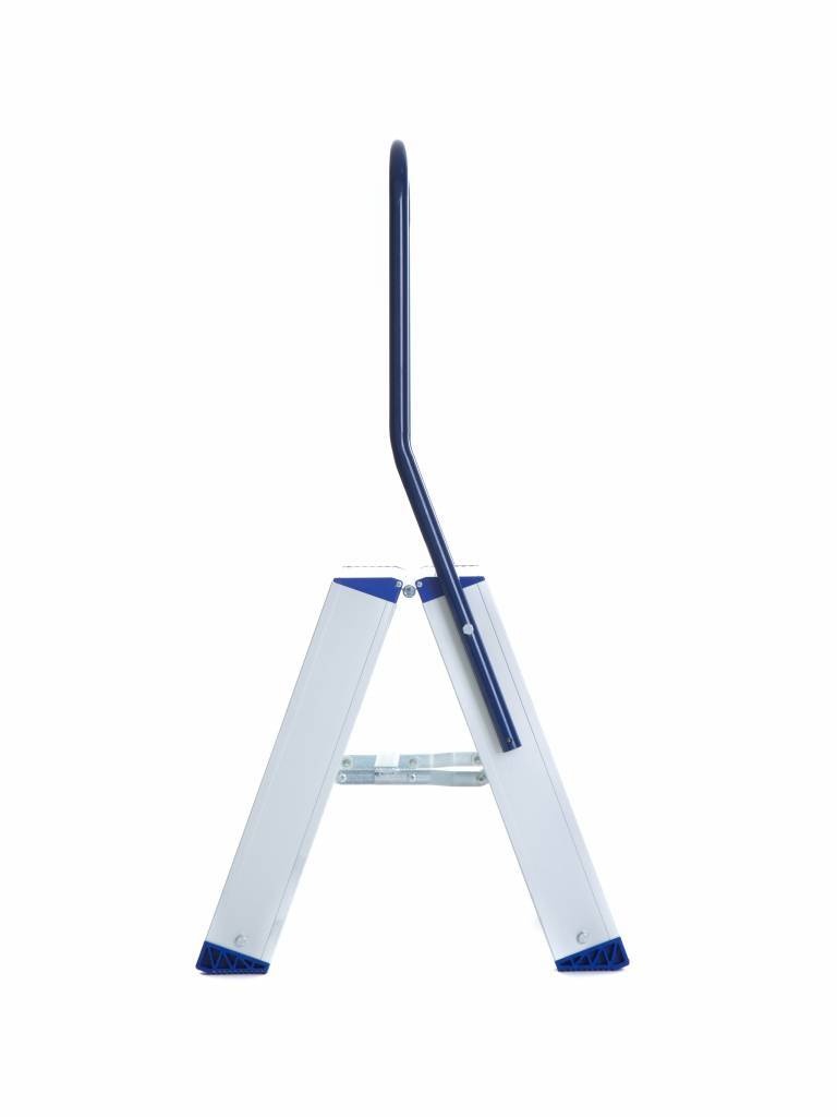 Diese Doppeltreppe verfügt über ein klappbares oberes Podest und ein Aluminiumscharnier darunter.