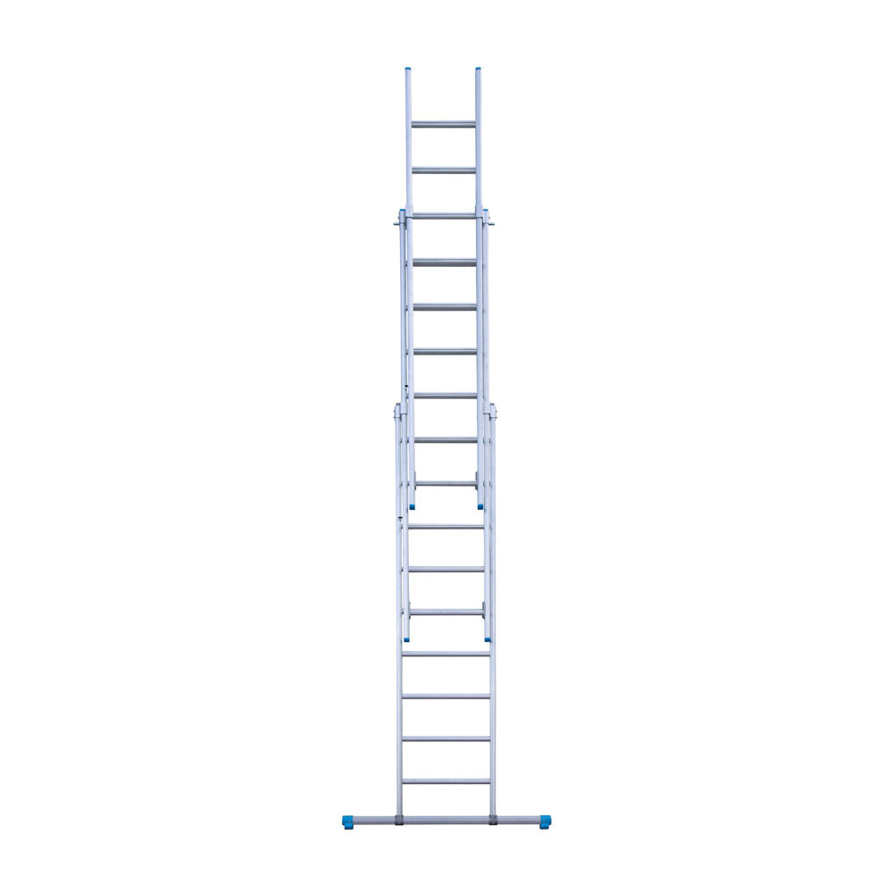 Sie suchen eine kostengünstige gerade dreiteilige Leiter für den professionellen Einsatz? Diese Eurostairs Reformleiter ist perfekt für professionelle Arbeiten geeignet, hat eine extra breite Stufe, die das Arbeiten stabiler macht, und ist dank ihres geringen Gewichts von weniger als 20,3 kg auch leicht zu handhaben und zu bewegen. Die Leiter kann auch doppelt als Treppe verwendet werden.