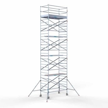 Der Anhänger wird mit einem Aluminium-Rollgerüst komplett mit einer Arbeitshöhe von 10,2 Metern, einer Breite von 135 cm und einer Länge von 250 cm geliefert. Es ist unser gängigstes Gerüst, das häufig für professionelle Arbeiten im Freien verwendet wird. Das Gerüst ist leicht zu handhaben, bietet ausreichend Arbeitsfläche und lässt sich einfach auf- und abbauen. Kurz gesagt: Qualität zu einem wettbewerbsfähigen Preis!