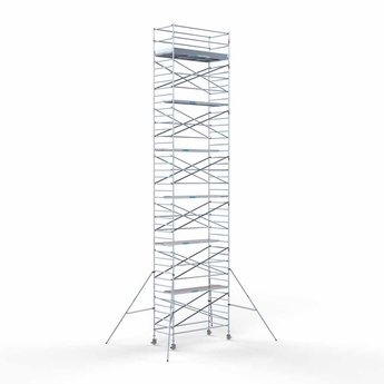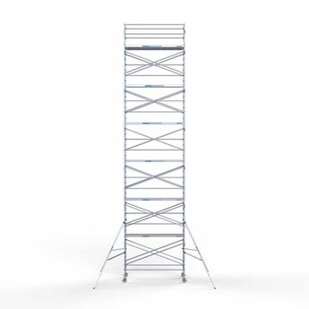 Der Anhänger wird mit einem Aluminium-Rollgerüst komplett mit einer Arbeitshöhe von 14,2 Metern, einer Breite von 75 cm und einer Länge von 305 cm geliefert. Es ist unser gängigstes Gerüst, das häufig für professionelle Arbeiten im Freien verwendet wird. Das Gerüst ist leicht zu handhaben, bietet ausreichend Arbeitsfläche und lässt sich einfach auf- und abbauen. Kurz gesagt: Qualität zu einem wettbewerbsfähigen Preis!