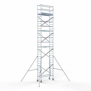 Der Anhänger wird mit einem Aluminium-Rollgerüst komplett mit einer Arbeitshöhe von 10,2 Metern, einer Breite von 75 cm und einer Länge von 190 cm geliefert. Es ist unser gängigstes Gerüst, das häufig für professionelle Arbeiten im Freien verwendet wird. Das Gerüst ist einfach zu handhaben, bietet ausreichend Arbeitsfläche und lässt sich leicht auf- und abbauen. Kurz gesagt: Qualität zu einem wettbewerbsfähigen Preis!
