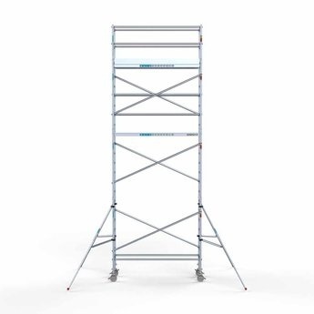 Der Anhänger wird mit einem Aluminium-Rollgerüst komplett mit einer Arbeitshöhe von 8,2 Metern, einer Breite von 75 cm und einer Länge von 250 cm geliefert. Es ist unser gängigstes Gerüst, das häufig für professionelle Arbeiten im Freien verwendet wird. Das Gerüst ist leicht zu handhaben, bietet ausreichend Arbeitsfläche und lässt sich einfach auf- und abbauen. Kurz gesagt, Qualität zu einem günstigen Preis!