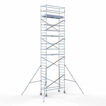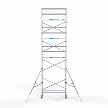 Der Anhänger wird mit einem Aluminium-Rollgerüst komplett mit einer Arbeitshöhe von 10,2 Metern, einer Breite von 90 cm und einer Länge von 250 cm geliefert. Es ist unser gängigstes Gerüst, das häufig für professionelle Arbeiten im Freien verwendet wird. Das Gerüst ist leicht zu handhaben, bietet ausreichend Arbeitsfläche und lässt sich einfach auf- und abbauen. Kurz gesagt, Qualität zu einem günstigen Preis!