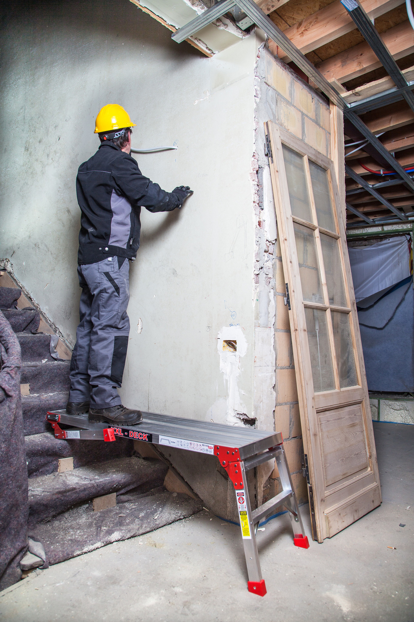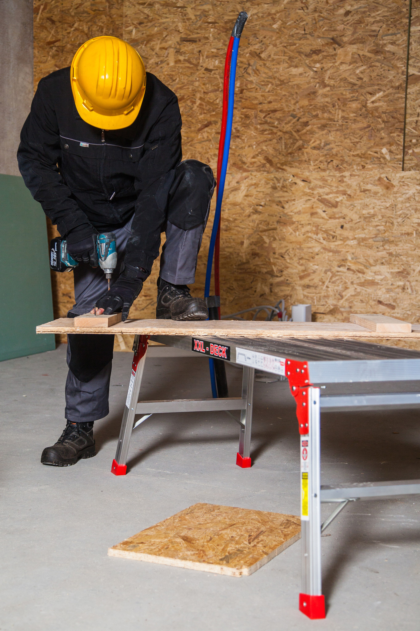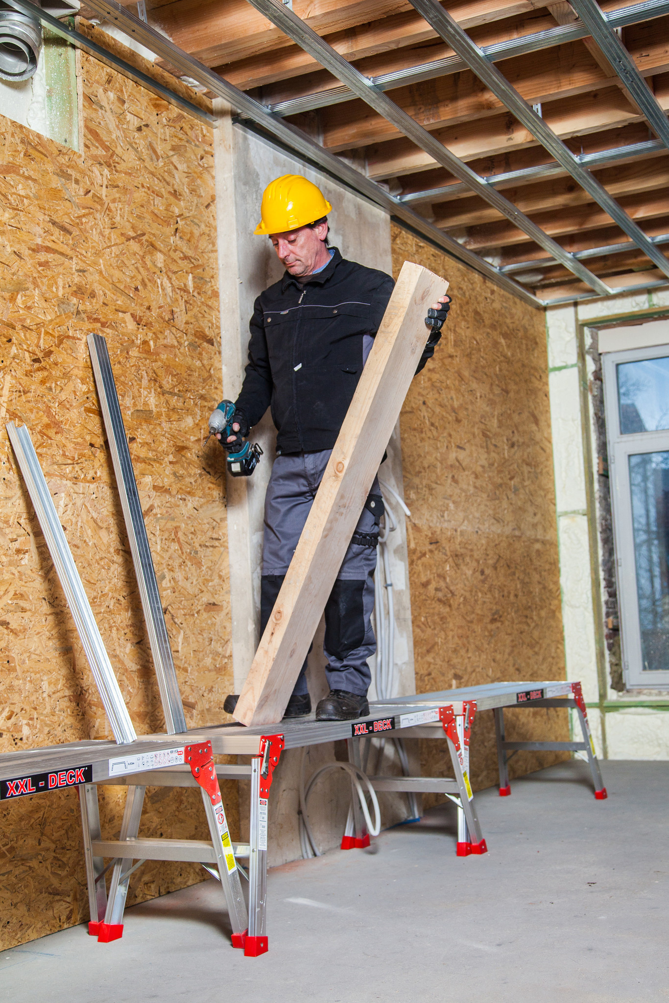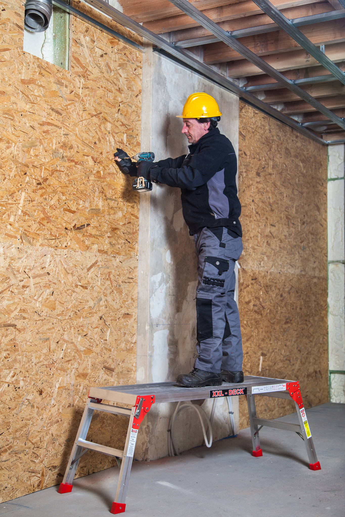 Eine Arbeitsbühne ist immer dann praktisch, wenn Sie etwas länger in der Höhe arbeiten müssen. Die XXL-DECK ist eine praktische faltbare Aluminiumplattform. Die extrabreite Plattform bietet den nötigen Stehkomfort und genau die kleine Stufe, die Sie brauchen.
