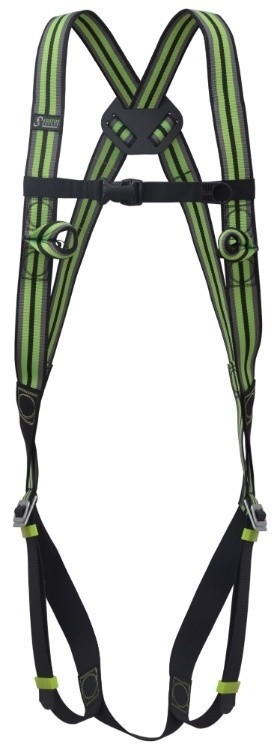 - Der Gurt verfügt über 2 Befestigungspunkte, einen auf dem Rücken (dorsal) und einen auf der Brust (sternal).