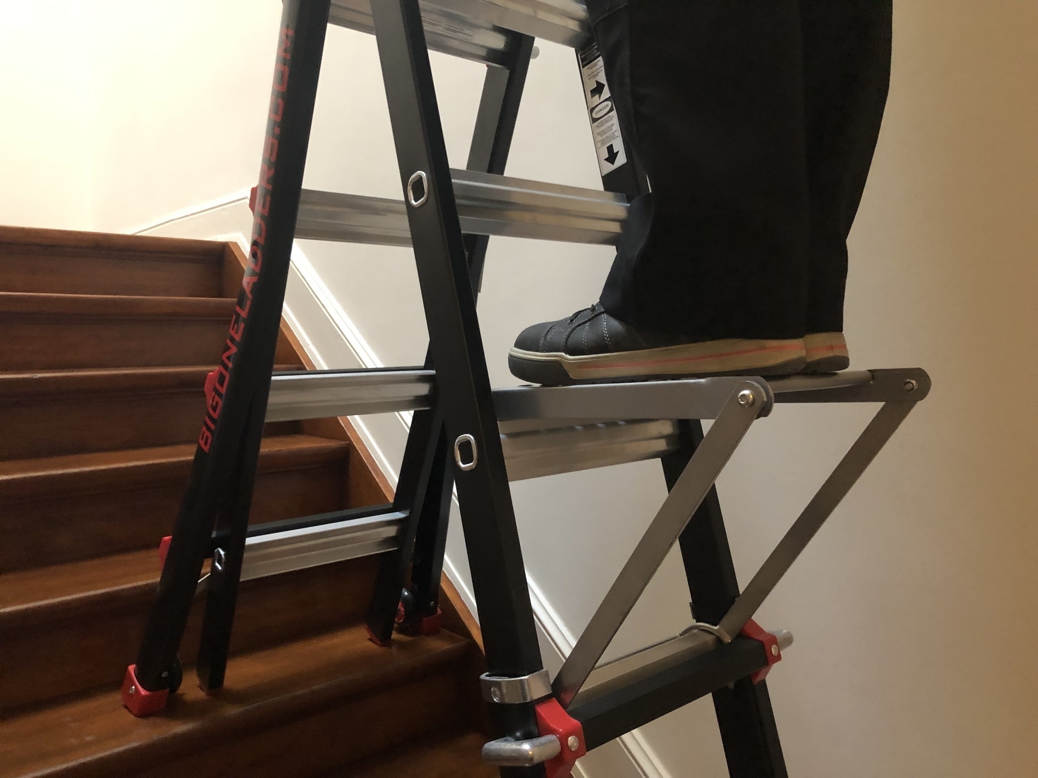 Wird um die Sprosse gehängt und kann leicht zusammengeklappt werden, um schnell und sicher auf die Leiter zu gelangen. Universell einsetzbar.