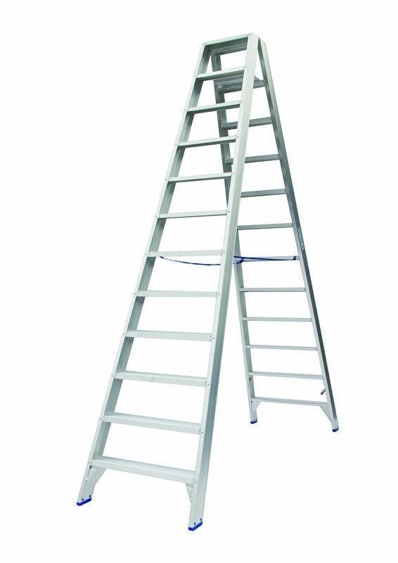 Unsere Solide Profi-Doppeltreppe mit 2 x 10 Stufen ist sehr robust. Die Treppe ist polyesterbeschichtet und speziell für den professionellen Einsatz mit einer klappbaren Plattform konzipiert. Die zweite klappbare Plattform bietet eine zusätzliche Sicherheit gegen Spreizen und Rutschen. Sie entspricht den Normen EN 131 und NEN 2484 - VGS und Commodities Act zugelassen und hat eine extra verschweißte Verstärkung an den Füßen, so dass es kein Ausrutschen gibt! Kurzum, eine gute Trittleiter für Arbeiten in der Höhe!