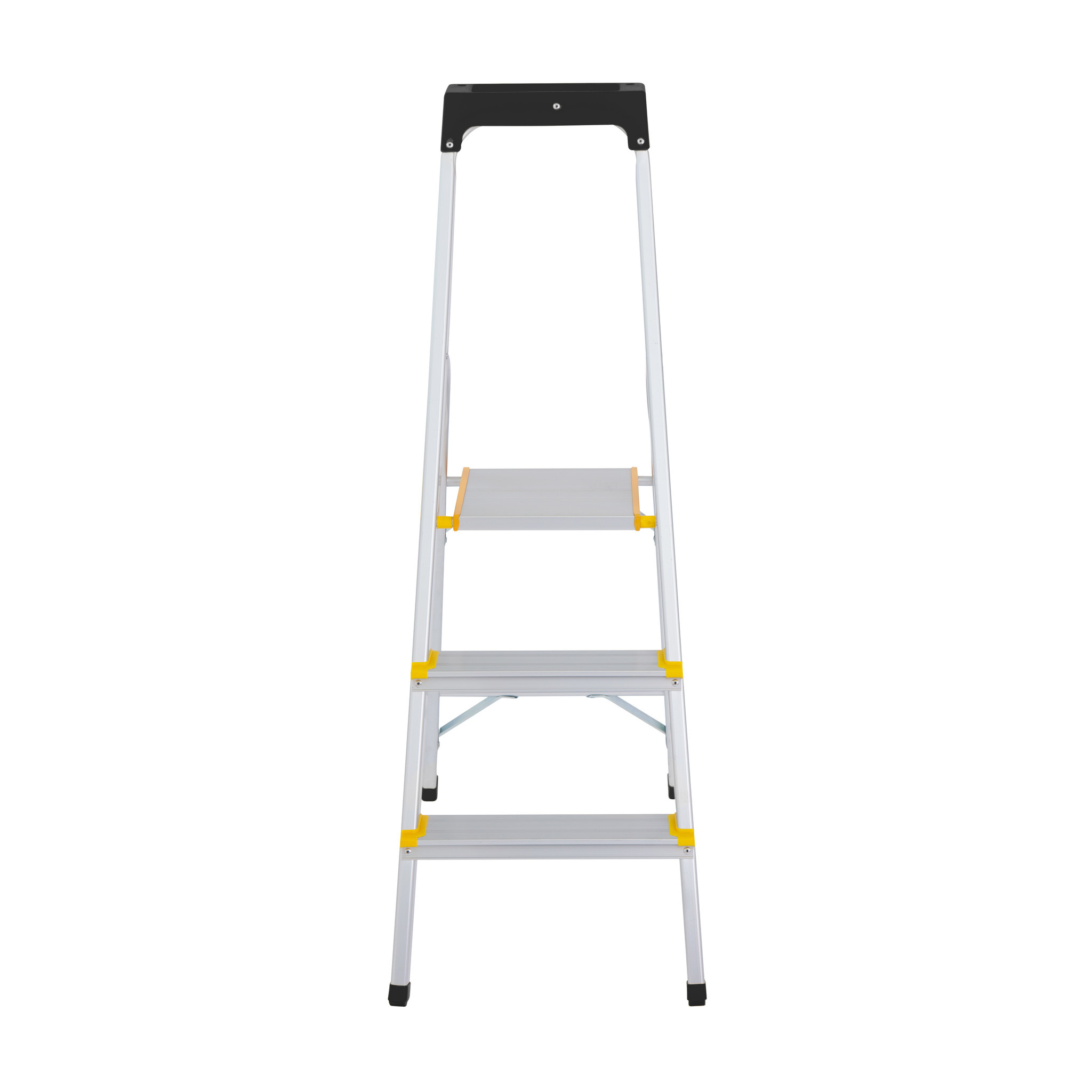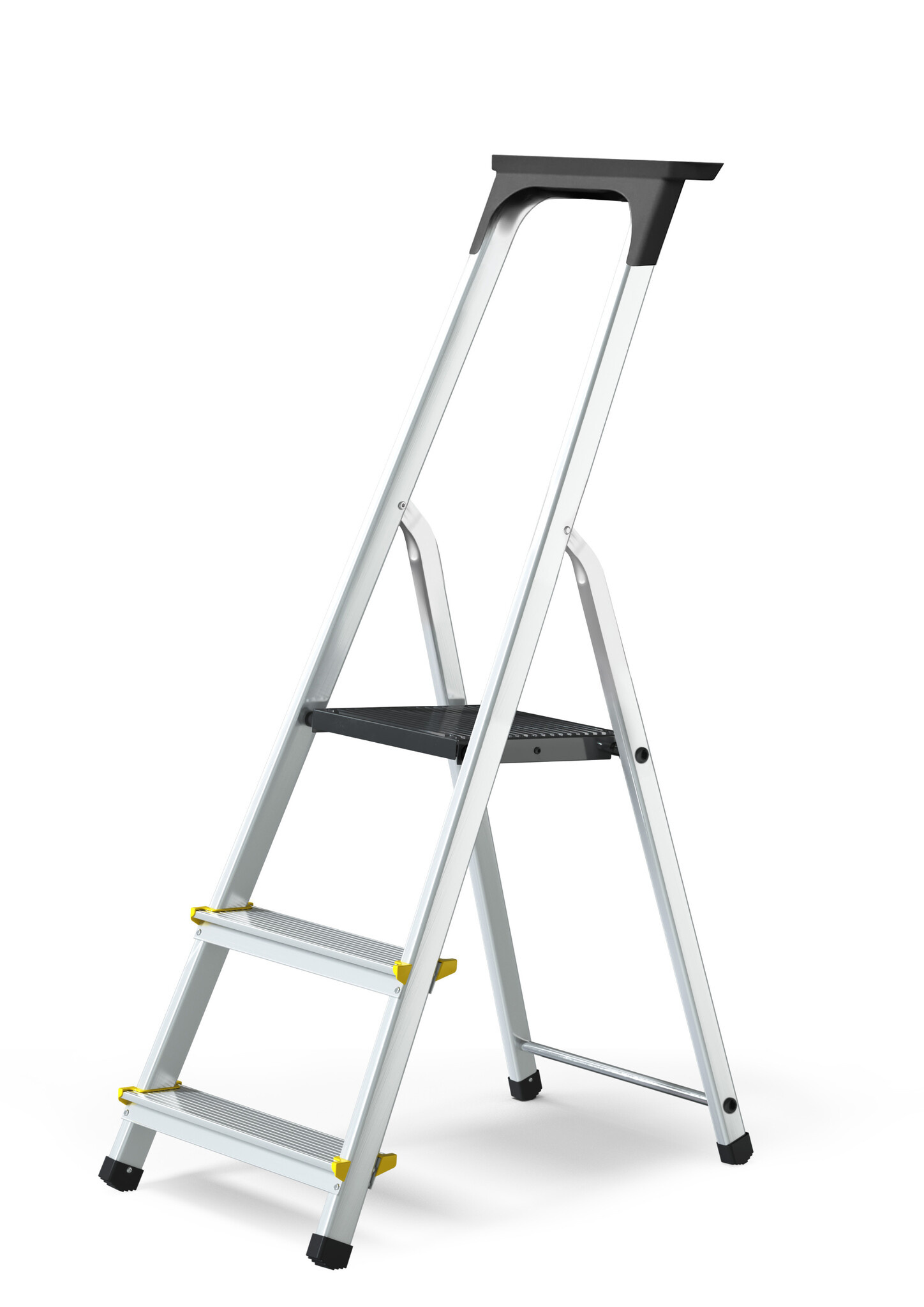 Wer kennt sie nicht, die einfache Trittleiter für den Haushalt? Die bekannte Einstiegsleiter, die in jedem Haushalt zu finden ist. Die oberste Stufe, auch Podest genannt, ist extra groß, so dass der gesamte Fuß auf das Podest passt. Dies bietet mehr Stehkomfort. Oben an der Halterung befindet sich eine kleine Werkzeugablage für kleine Werkzeuge. Praktisch, um nicht ständig auf- und abzusteigen, um Materialien zu greifen und/oder zu wechseln.