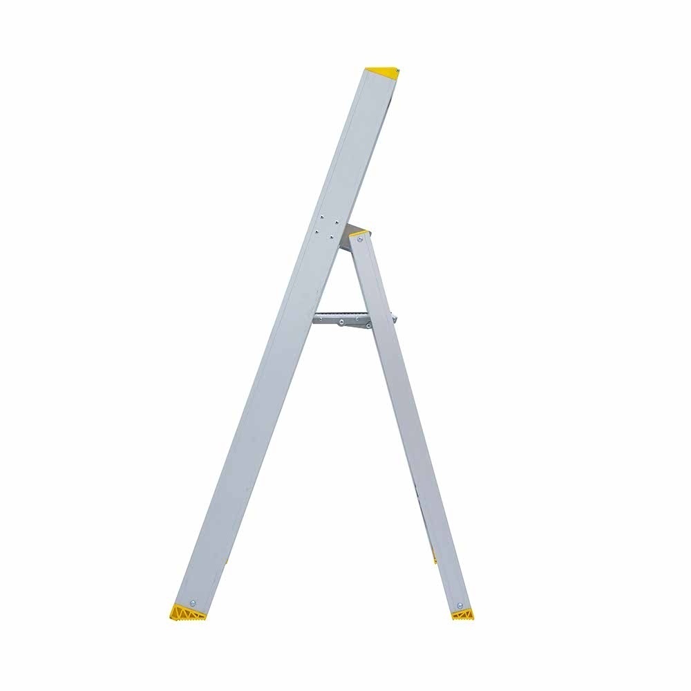 Professionelle Einsteigtreppe von Panthera. Handliche, leichte Treppe aus starkem und robustem Aluminium. Die Treppe hat rutschfeste Fußkappen, Stufen und Podeste. Auf dem großen Podest (der höchsten Stufe) passen die Füße ganz hinein, was bequemer und stabiler ist. Zusammengeklappt hat die Trittleiter eine Höhe von 1,46 cm. Die Leiter ist für den intensiven und täglichen Gebrauch durch professionelle Handwerker geeignet. Der integrierte Geländer hat eine Aussparung (Ablage) für kleine Werkzeuge wie Dübel, Schrauben und Schraubenzieher. Praktisch, um diese auf der Treppe aufzubewahren, ohne wieder hinauf und hinunter gehen zu müssen.