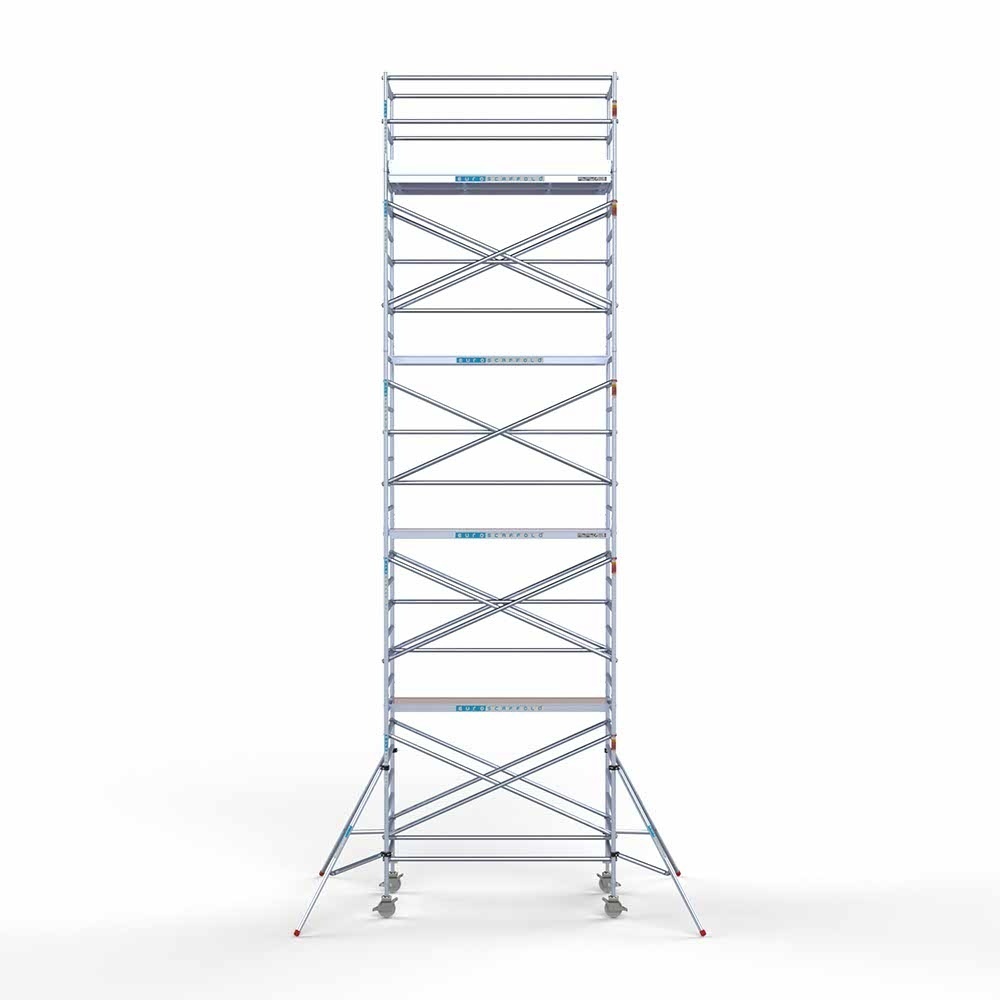 Das EuroRollgerüsthat eine Breite von 135 cm, eine Länge von 250 cm und eine Arbeitshöhe von 10,2 m. Dieses Gerüst ist bekannt für seine Benutzerfreundlichkeit und lange Lebensdauer. Die extrabreite Plattform bietet Ihnen einen größeren und komfortableren Arbeitsbereich. Im Vergleich zu anderen Gerüsten verfügt das Euro-Gerüst über ein anderes Material und einen sich verjüngenden Verbindungsbolzen, wodurch es noch einfacher aufzustellen ist. Unter anderem Bordbretter aus Aluminium, Lenkrollen aus Nylon für eine lange Lebensdauer und eine schwerere Auflagefläche, die wir für eine intensive Nutzung empfehlen.