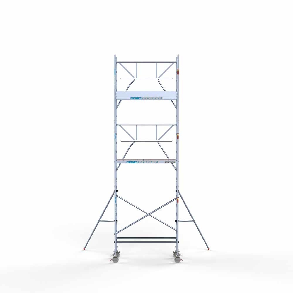 Dieses komplette professionelle Rollgerüst entspricht der neuen Norm, einschließlich Montagesystem mit Frontgeländer & leichten Carbonböden. Mit diesem Montagesystem sind Sie während des Auf- und Abbaus vor Absturzgefahren geschützt.