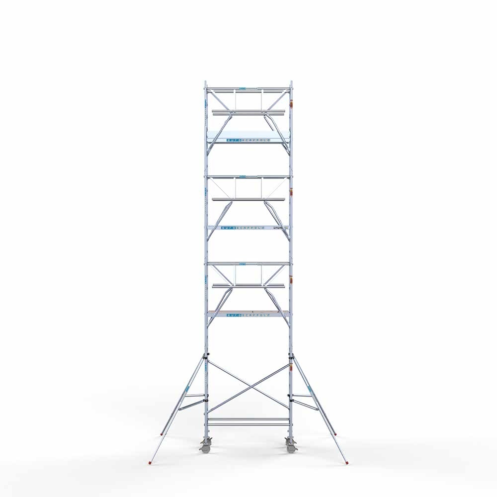 Dieses komplette professionelle Rollgerüst entspricht der neuen Norm 2018, einschließlich Montagesystem mit Frontgeländer. Mit diesem Montagesystem sind Sie während des Auf- und Abbaus vor der Gefahr des Absturzes geschützt. Dieses Rollgerüst garantiert eine einfache Handhabung, eine sehr lange Lebensdauer, ist direkt ab Lager lieferbar und wird in den Niederlanden und Belgien kostenlos versandt.