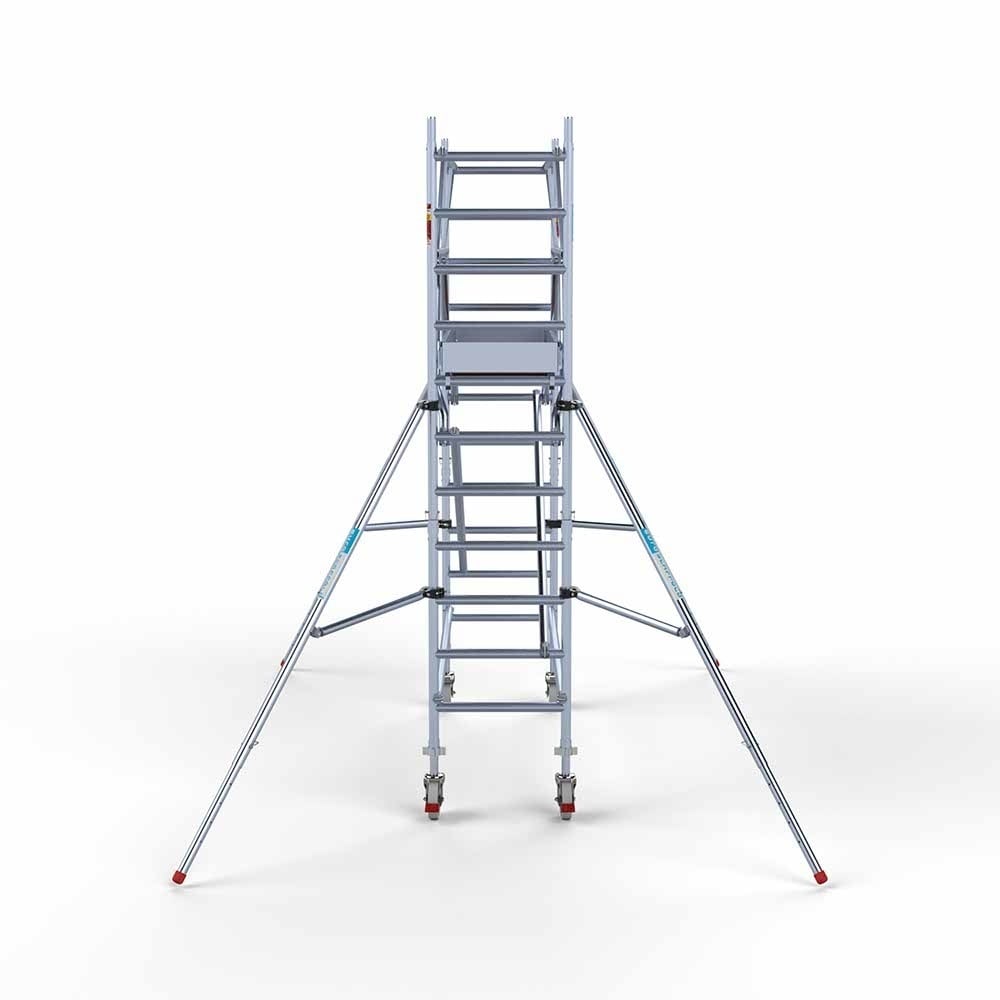 Dieses komplette professionelle Rollgerüst entspricht der neuen Norm 2018, einschließlich Montagesystem mit Frontgeländer. Mit diesem Montagesystem sind Sie während des Auf- und Abbaus vor Absturzgefahr geschützt. Dieses Rollgerüst garantiert eine einfache Handhabung, eine sehr lange Lebensdauer, ist direkt ab Lager lieferbar und wird in den Niederlanden und Belgien kostenlos verschickt.