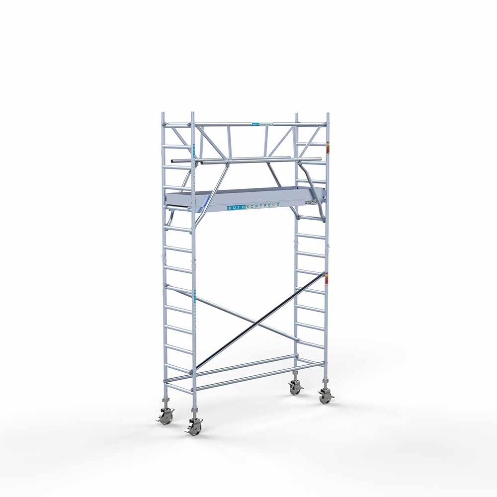Ab dem 1. Januar 2018 gelten neue Vorschriften für den Auf- und Abbau eines Rollgerüsts für den professionellen Einsatz. Zu diesem Zweck wurde das vordere Geländer entwickelt und ist im Lieferumfang dieses Produkts enthalten. Möchten Sie mehr über die neue Norm 2018 für den Aufbau von Rollgerüsten erfahren? Lesen Sie hier darüber .