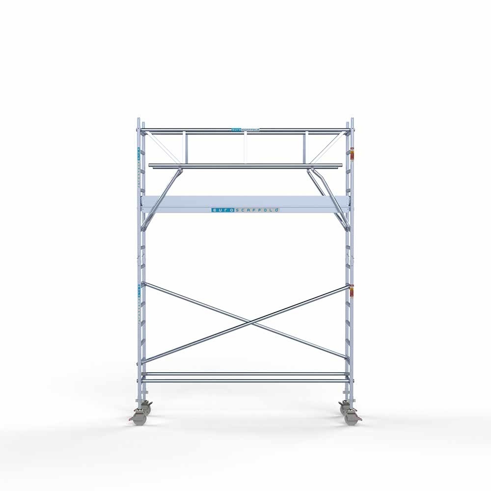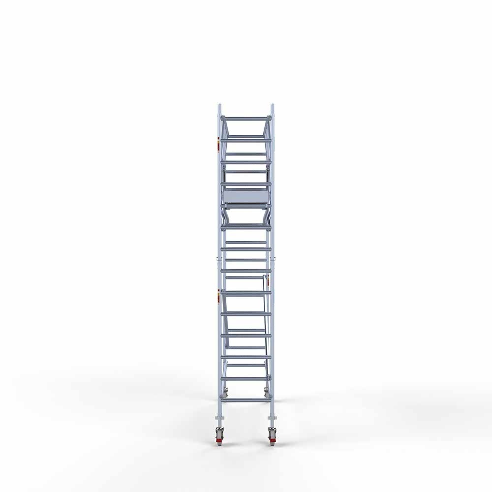 Dieses komplette professionelle Rollgerüst entspricht der neuen Norm 2018, einschließlich Montagesystem mit Frontgeländer. Mit diesem Montagesystem sind Sie während des Auf- und Abbaus vor Absturzgefahr geschützt. Dieses Rollgerüst garantiert eine einfache Handhabung, eine sehr lange Lebensdauer, ist direkt ab Lager lieferbar und wird in den Niederlanden und Belgien kostenlos versandt.