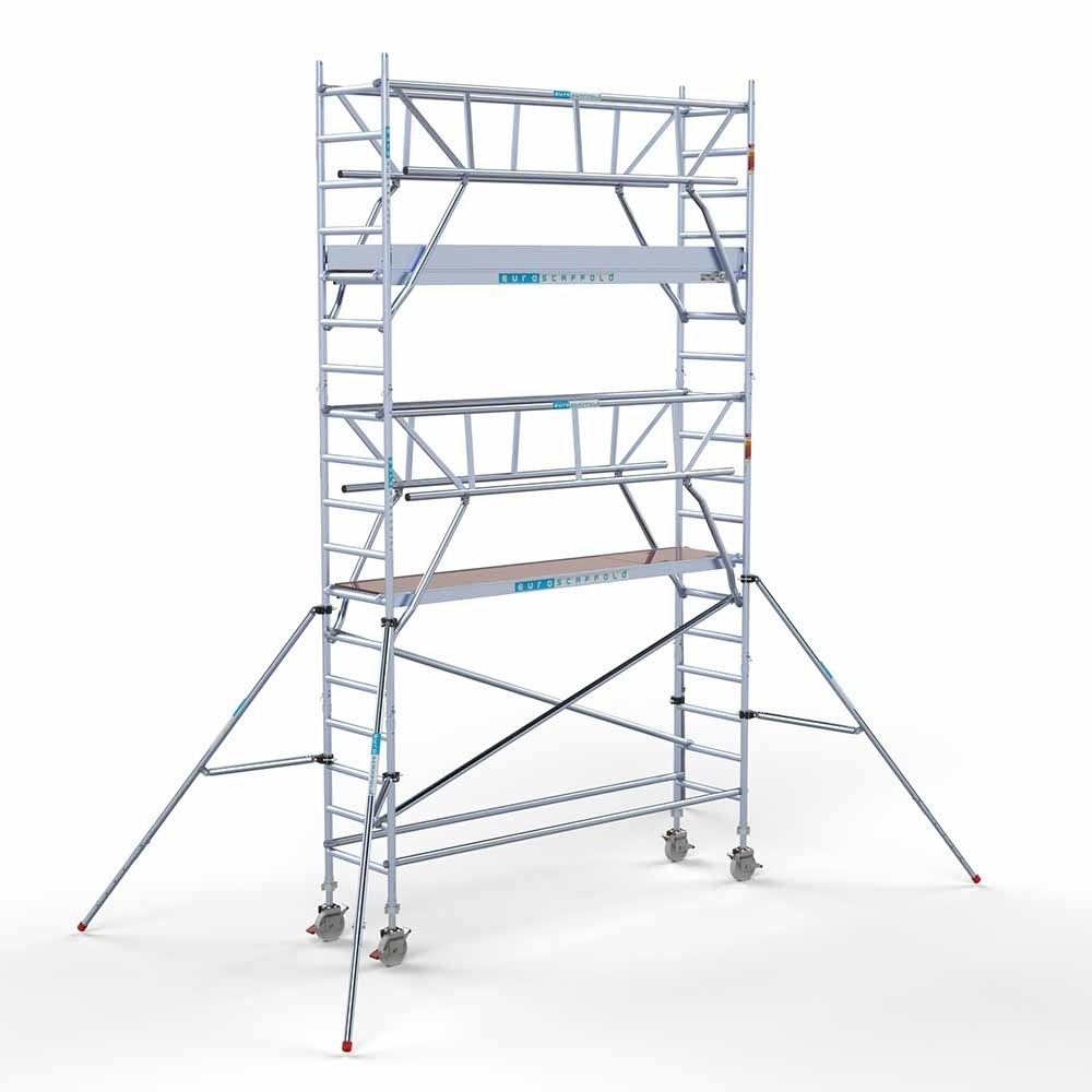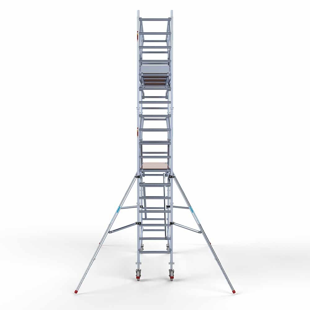 Dieses komplette professionelle Rollgerüst entspricht der neuen Norm 2018, einschließlich Montagesystem mit Frontgeländer. Mit diesem Montagesystem sind Sie während des Auf- und Abbaus vor Absturzgefahr geschützt. Dieses Rollgerüst garantiert eine einfache Handhabung, eine sehr lange Lebensdauer, ist direkt ab Lager lieferbar und wird in den Niederlanden und Belgien kostenlos verschickt.