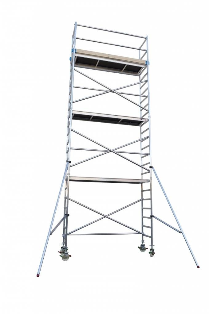 Dieses Euroscaffold Rollgerüst hat eine Breite von 75 cm, eine Länge von 190 cm und eine Arbeitshöhe von 8,2 Metern. Dieses Rollgerüst ist für seine Benutzerfreundlichkeit und lange Lebensdauer bekannt. Das Rollgerüst aus Aluminium ist für den professionellen Einsatz bestimmt.