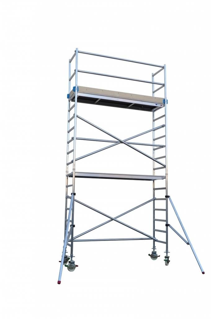 Dieses Euroscaffold Rollgerüst hat eine Breite von 75 cm, eine Länge von 250 cm und eine Arbeitshöhe von 6,2 Metern. Dieses Rollgerüst ist für seine Benutzerfreundlichkeit und lange Lebensdauer bekannt. Das Rollgerüst aus Aluminium ist für den professionellen Einsatz bestimmt.