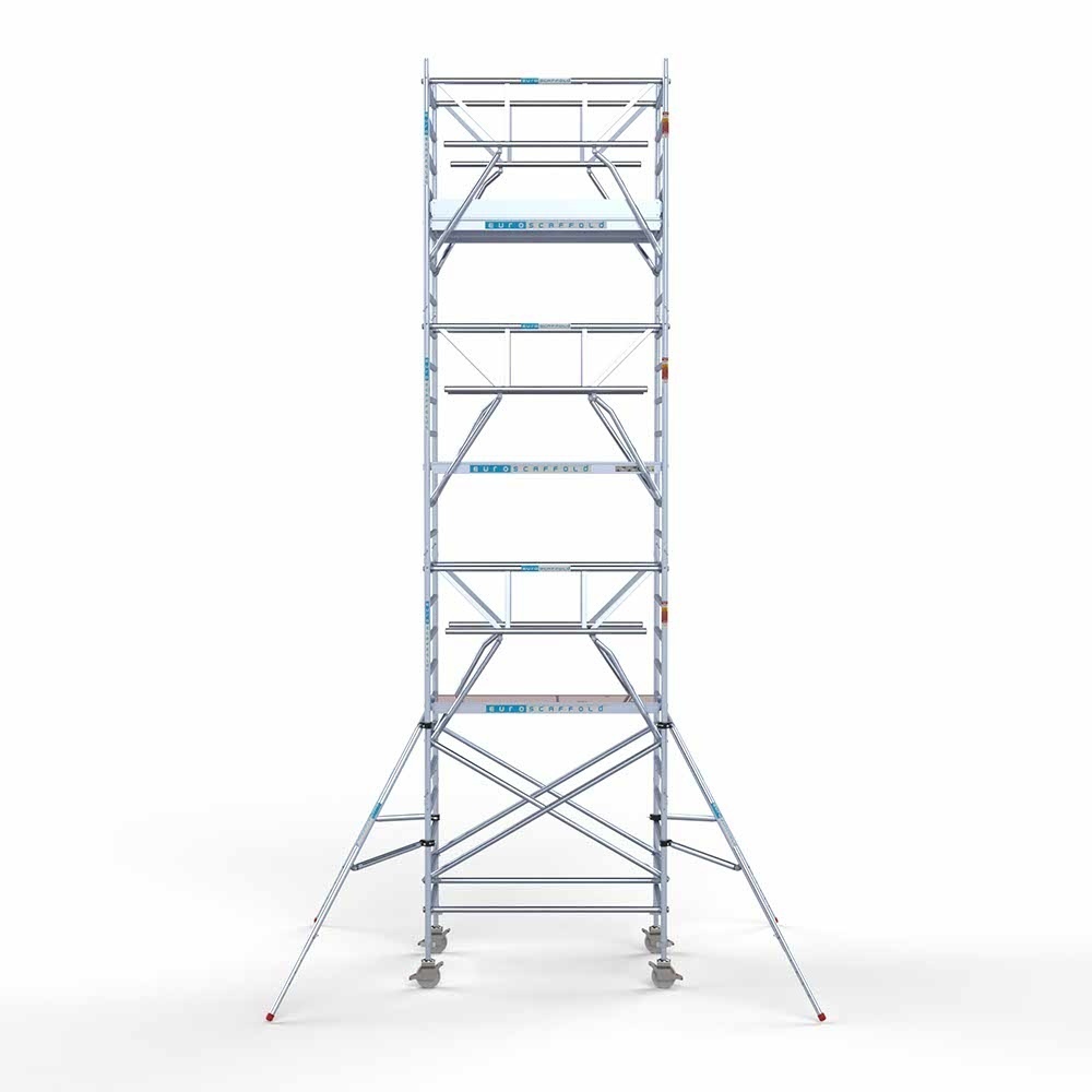Dieses komplette professionelle Rollgerüst entspricht der neuen Norm 2018, einschließlich Montagesystem mit Frontgeländer. Mit diesem Montagesystem sind Sie während des Auf- und Abbaus vor Absturzgefahr geschützt. Dieses Rollgerüst garantiert eine einfache Handhabung, eine sehr lange Lebensdauer, ist direkt ab Lager lieferbar und wird in den Niederlanden und Belgien kostenlos versandt.