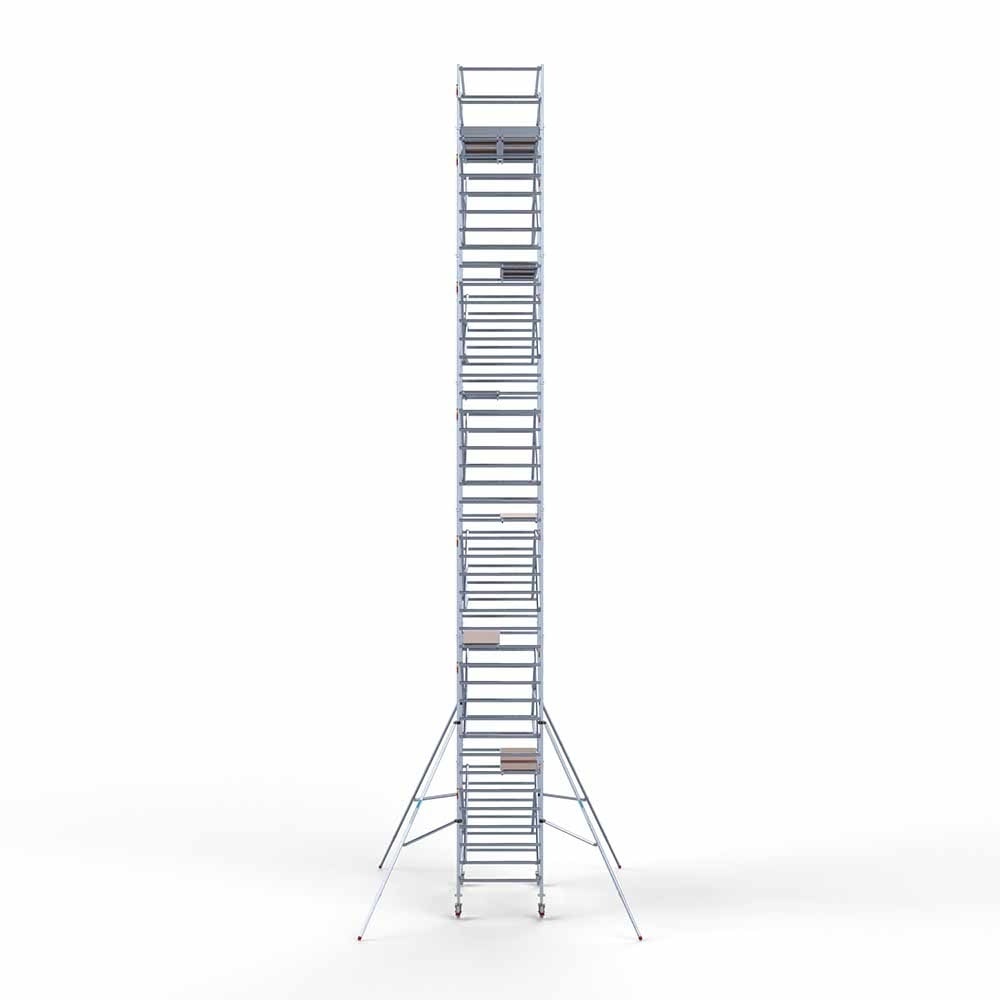 Dieses Rollgerüst besteht aus stabilem und leichtem Aluminium mit einer Breite von 135 cm(extra großer Arbeitsbereich!) und einer Plattformlänge von 250 cm. Die maximale Arbeitshöhe beträgt 14,2, es hat eine lange Lebensdauer, lässt sich leicht auf- und abbauen und besteht aus hochwertigen Materialien. Ein typischer Fall von komfortablerem Arbeiten in der Höhe.