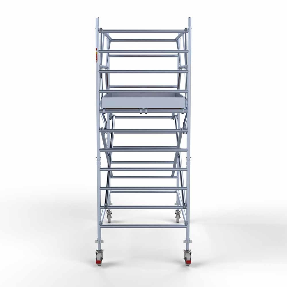 - Das Rollgerüst ist aus hochwertigem, leichtem Aluminium gefertigt, so dass der Aufbau ein Kinderspiel ist und der Materialtransport für die aufbauende Person keine Belastung darstellt.