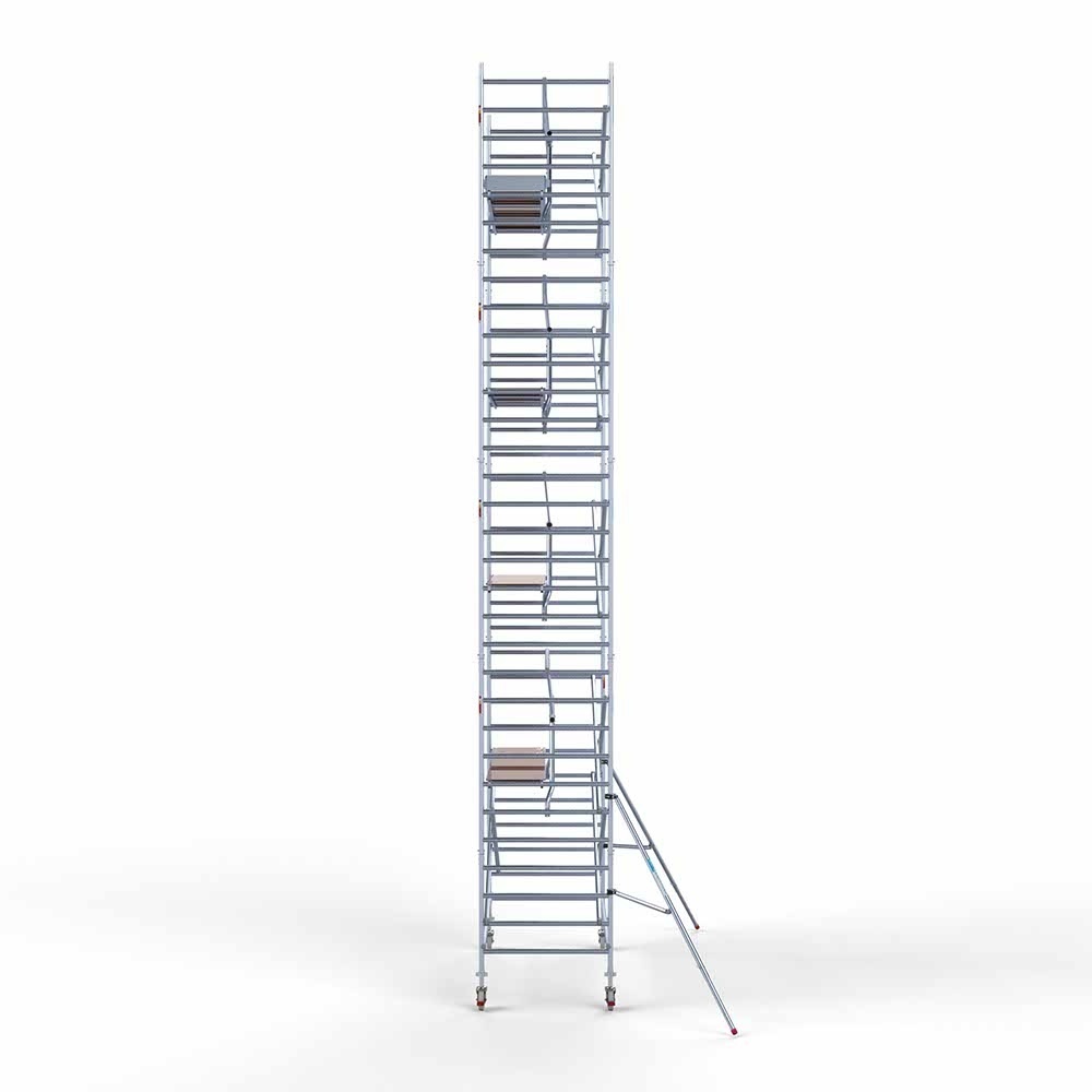 Dieses komplette professionelle Rollgerüst entspricht der neuen Norm 2018, einschließlich Montagesystem mit Frontgeländer. Mit diesem Montagesystem sind Sie während des Auf- und Abbaus vor der Gefahr eines Absturzes geschützt. Dieses Rollgerüst garantiert eine einfache Handhabung, eine sehr lange Lebensdauer, ist direkt ab Lager lieferbar und wird in den Niederlanden und Belgien kostenlos versandt.