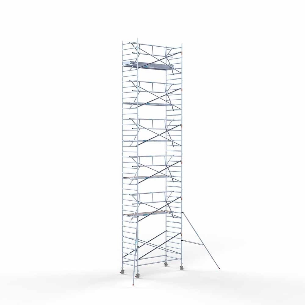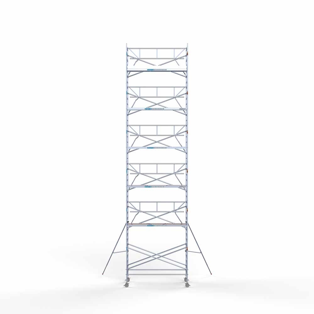 Dieses komplette professionelle Rollgerüst entspricht der neuen Norm 2018, einschließlich Montagesystem mit Frontgeländer. Mit diesem Montagesystem sind Sie während des Auf- und Abbaus vor der Gefahr eines Absturzes geschützt. Dieses Rollgerüst garantiert eine einfache Handhabung, eine sehr lange Lebensdauer, ist direkt ab Lager lieferbar und wird in den Niederlanden und Belgien kostenlos versandt.