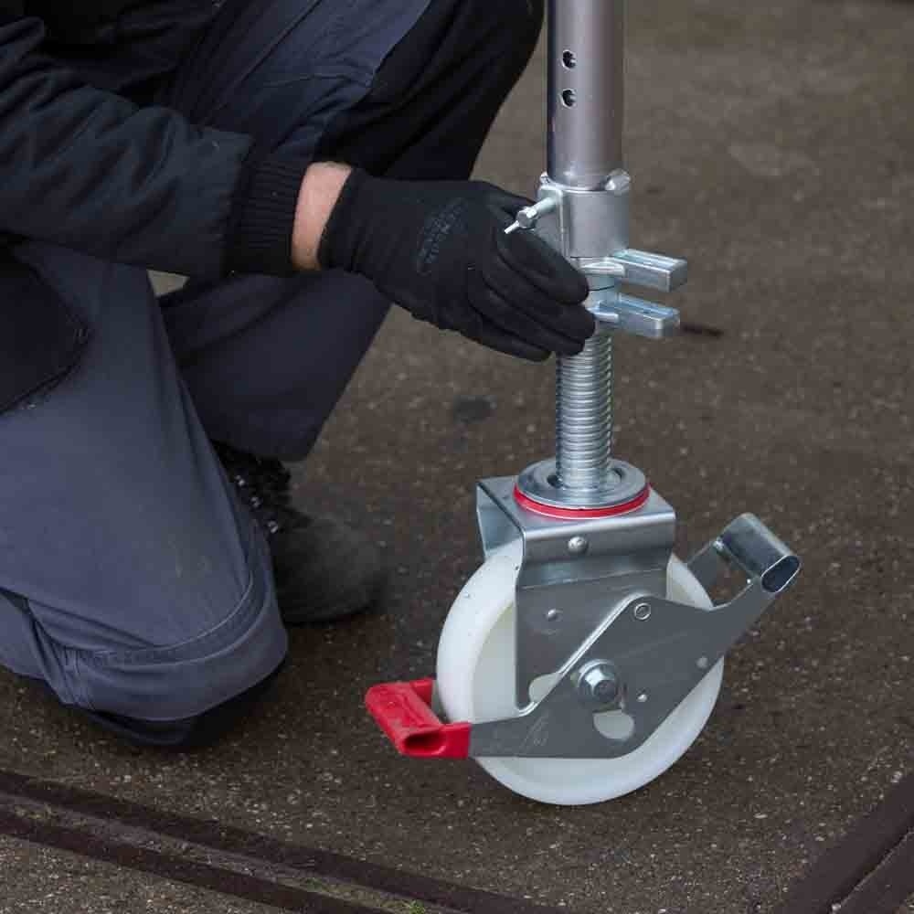 - Das Rollgerüst ist aus hochwertigem, leichtem Aluminium gefertigt, so dass der Aufbau ein Kinderspiel ist und der Materialtransport für die aufbauende Person keine Belastung darstellt.