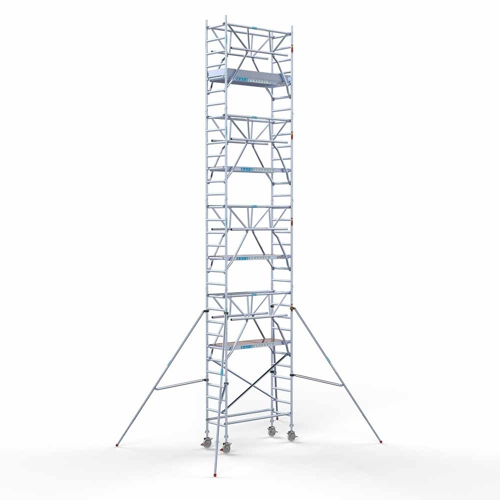 Dieses komplette professionelle Rollgerüst entspricht der neuen Norm 2018, einschließlich Montagesystem mit Frontgeländer. Mit diesem Montagesystem sind Sie während des Auf- und Abbaus vor der Gefahr des Absturzes geschützt. Dieses Rollgerüst garantiert eine einfache Handhabung, eine sehr lange Lebensdauer, ist direkt ab Lager lieferbar und wird in den Niederlanden und Belgien kostenlos verschickt.