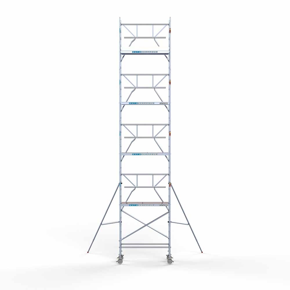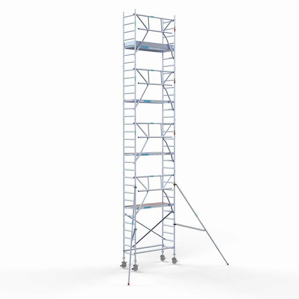 Dieses komplette professionelle Rollgerüst entspricht der neuen Norm 2018, einschließlich Montagesystem mit Frontgeländer. Mit diesem Montagesystem sind Sie während des Auf- und Abbaus vor der Gefahr eines Absturzes geschützt. Dieses Rollgerüst garantiert eine einfache Handhabung, eine sehr lange Lebensdauer, ist direkt ab Lager lieferbar und wird in den Niederlanden und Belgien kostenlos versandt.