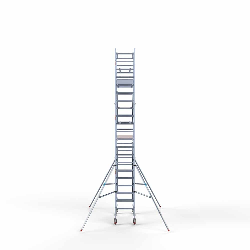 Dieses Rollgerüst ist aus stabilem und leichtem Aluminium gefertigt und hat eine Breite von 75 cm und eine Plattformlänge von 190 cm. Die maximale Arbeitshöhe beträgt 7,2, was dieses Rollgerüst zu einer perfekten Größe für professionelle Arbeiten macht. Das Material unterscheidet sich von unseren Basis-Rollgerüsten, zum Beispiel durch Bordbretter (Aluminium) oder Gerüsträder mit einer schwereren Tragfläche (800 kg anstelle von 300 kg). Daher empfehlen wir diese Rollgerüste für den mehrfachen professionellen Einsatz.