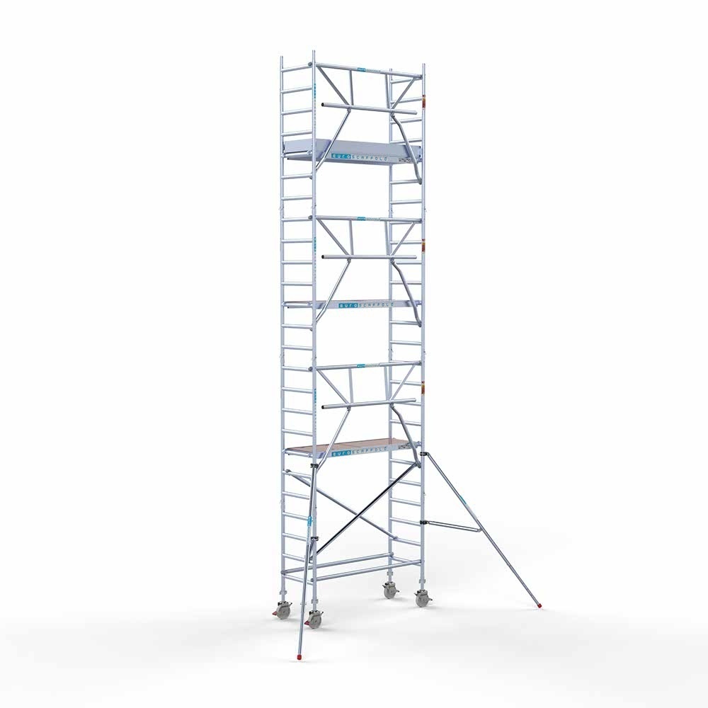 Dieses komplette professionelle Rollgerüst entspricht der neuen Norm 2018, einschließlich Montagesystem mit Frontgeländer. Mit diesem Montagesystem sind Sie während des Auf- und Abbaus vor der Gefahr eines Absturzes geschützt. Dieses Rollgerüst garantiert eine einfache Handhabung, eine sehr lange Lebensdauer, ist direkt ab Lager lieferbar und wird in den Niederlanden und Belgien kostenlos versandt.
