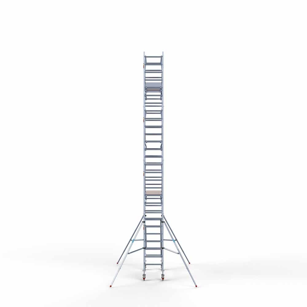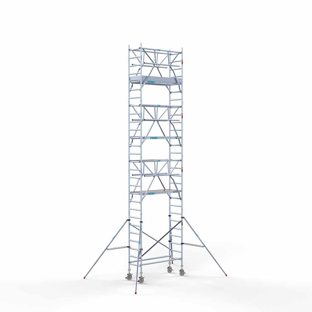 Diese Gerüstserie verfügt über ein sehr komplettes Ausstattungssortiment, das es zu einem Mehrzweckgerüst macht. Es bietet Ihnen einen stabilen und sicheren Platz für Ihre Arbeit in der Höhe. Darüber hinaus wurde das Rollgerüst so entwickelt, dass es für Sie einfach zu bedienen ist. So erleichtern beispielsweise die Aufkleber auf den Streben den Aufbau oder das leichte Aluminiummaterial macht das Rollgerüst leicht zu bewegen.