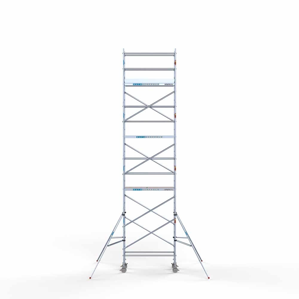 Dieses Rollgerüst ist aus stabilem und leichtem Aluminium gefertigt und hat eine Breite von 75 cm und eine Plattformlänge von 190 cm. Die maximale Arbeitshöhe beträgt 9,2, was dieses Rollgerüst zu einer perfekten Größe für professionelle Arbeiten macht. Das Material unterscheidet sich von unseren Basis-Rollgerüsten, zum Beispiel durch Bordbretter (Aluminium) oder Gerüsträder mit einer schwereren Tragfläche (800 kg anstelle von 300 kg). Daher empfehlen wir diese Rollgerüste für den mehrfachen professionellen Einsatz.