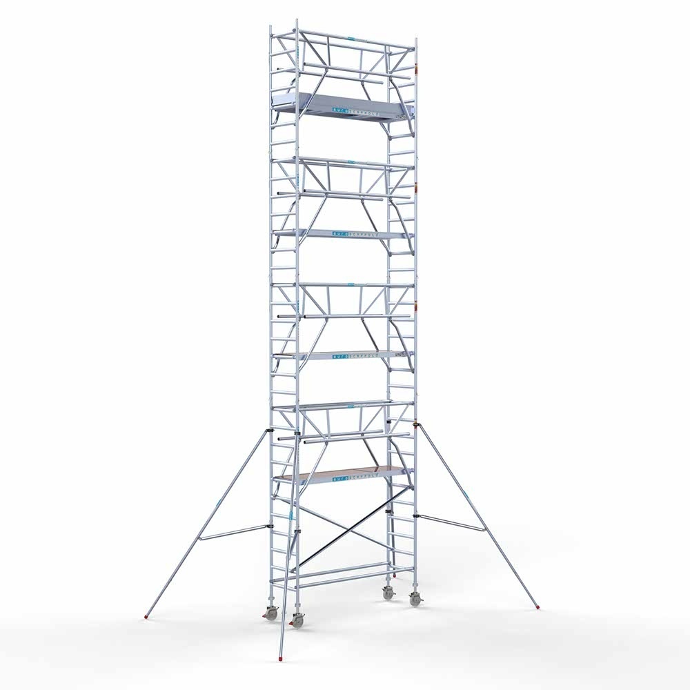 Dieses komplette professionelle Rollgerüst entspricht der neuen Norm 2018, einschließlich Montagesystem mit Frontgeländer. Mit diesem Montagesystem sind Sie während des Auf- und Abbaus vor Absturzgefahren geschützt. Dieses Rollgerüst garantiert eine einfache Handhabung, eine sehr lange Lebensdauer, ist direkt ab Lager lieferbar und wird in den Niederlanden und Belgien kostenlos verschickt.
