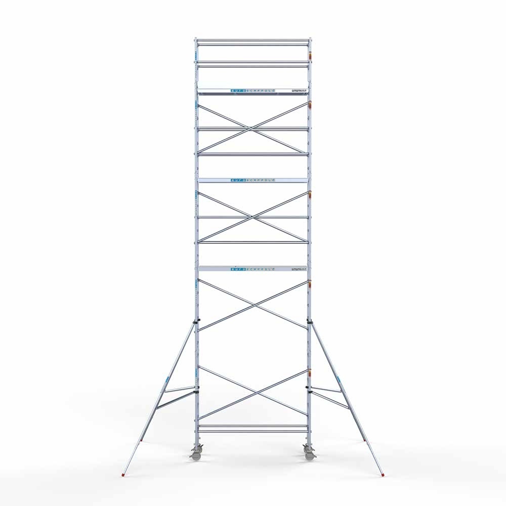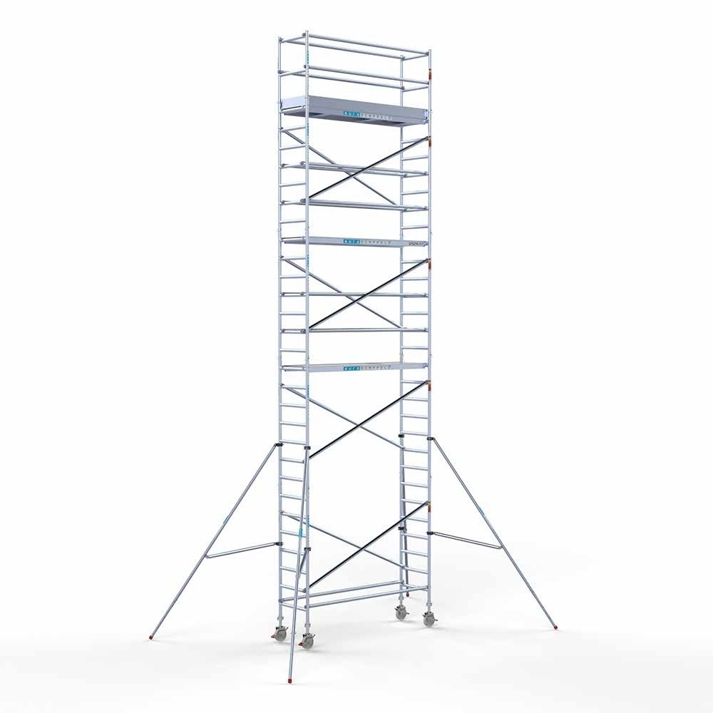 Dieses Rollgerüst ist aus stabilem und leichtem Aluminium gefertigt und hat eine Breite von 75 cm und eine Plattformlänge von 250 cm. Die maximale Arbeitshöhe beträgt 10,2, was dieses Rollgerüst zu einer perfekten Größe für professionelle Arbeiten macht. Das Material unterscheidet sich von unseren Basis-Rollgerüsten, zum Beispiel durch Bordbretter (Aluminium) oder Gerüsträder mit einer schwereren Tragfläche (800 kg statt 300 kg). Daher empfehlen wir diese Rollgerüste für den mehrfachen professionellen Einsatz.