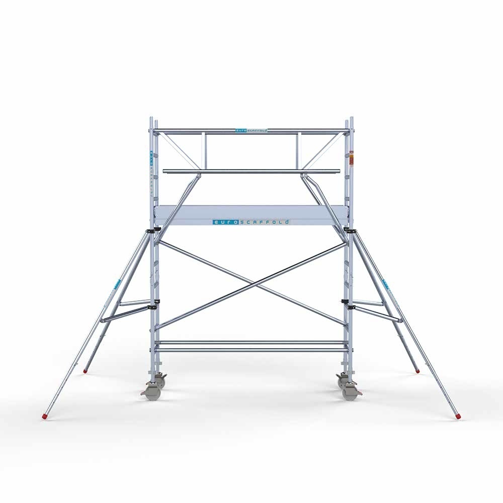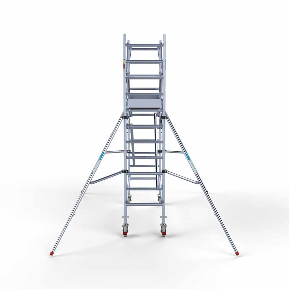Dieses komplette professionelle Rollgerüst entspricht der neuen Norm 2018, einschließlich Montagesystem mit Frontgeländer. Mit diesem Montagesystem sind Sie während des Auf- und Abbaus vor Absturzgefahren geschützt. Dieses Rollgerüst garantiert eine einfache Handhabung, eine sehr lange Lebensdauer, ist direkt ab Lager lieferbar und wird in den Niederlanden und Belgien kostenlos verschickt.