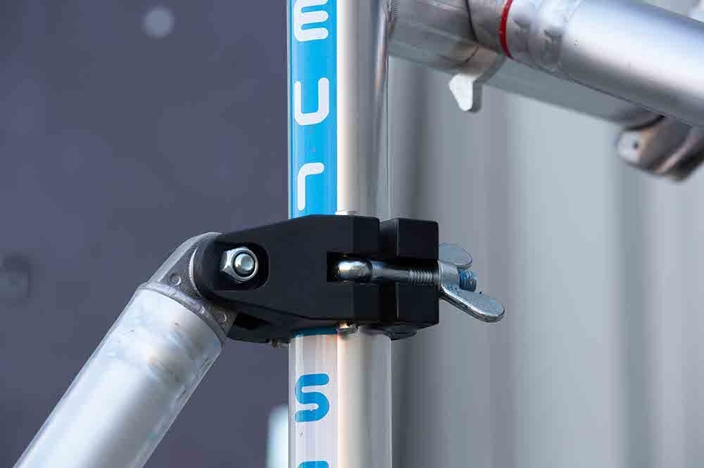 - Die horizontalen und diagonalen Streben sind farblich gekoppelt. Dadurch wird der Aufbau des Gerüsts wesentlich effizienter