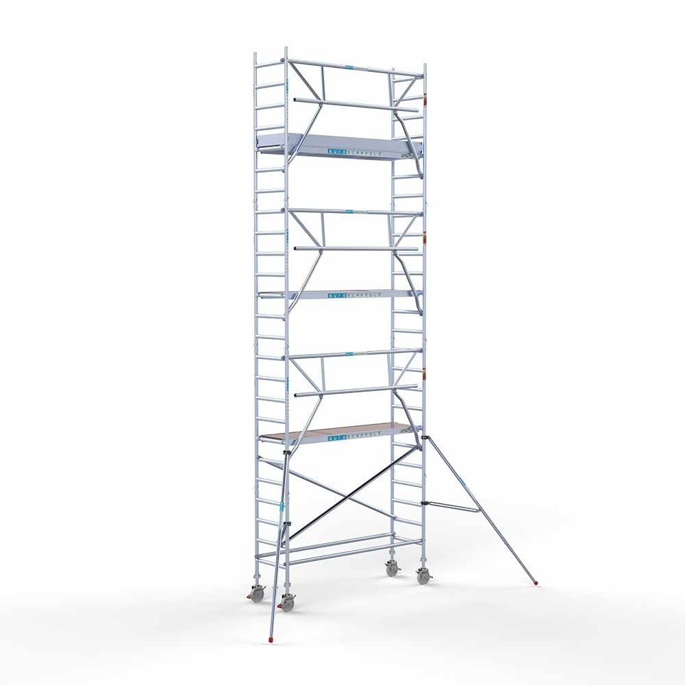 Dieses komplette professionelle Rollgerüst entspricht der neuen Norm 2018, einschließlich Montagesystem mit Frontgeländer. Mit diesem Montagesystem sind Sie während des Auf- und Abbaus vor der Gefahr eines Absturzes geschützt. Dieses Rollgerüst garantiert eine einfache Handhabung, eine sehr lange Lebensdauer, ist direkt ab Lager lieferbar und wird in den Niederlanden und Belgien kostenlos versandt.