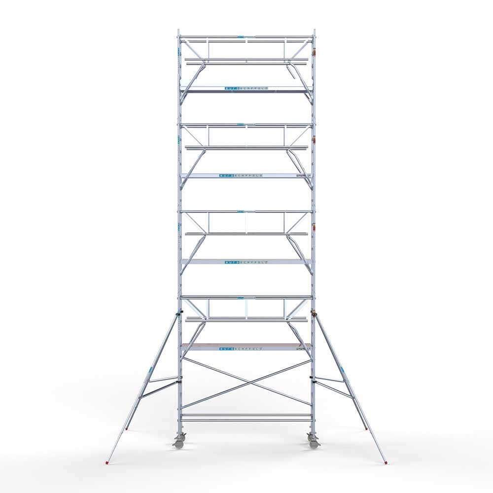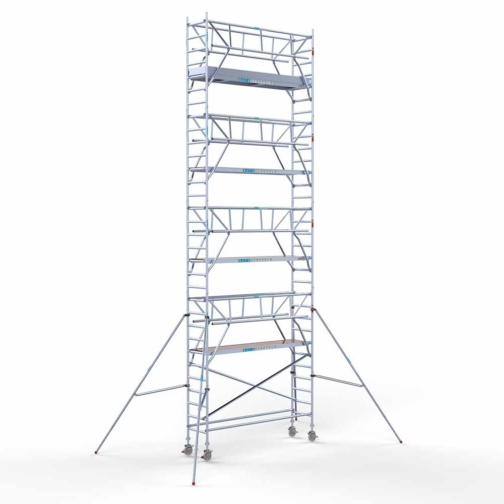 Dieses komplette professionelle Rollgerüst entspricht der neuen Norm 2018, einschließlich Montagesystem mit Frontgeländer. Mit diesem Montagesystem sind Sie während des Auf- und Abbaus vor der Gefahr eines Absturzes geschützt. Dieses Rollgerüst garantiert eine einfache Handhabung, eine sehr lange Lebensdauer, ist direkt ab Lager lieferbar und wird in den Niederlanden und Belgien kostenlos versandt.