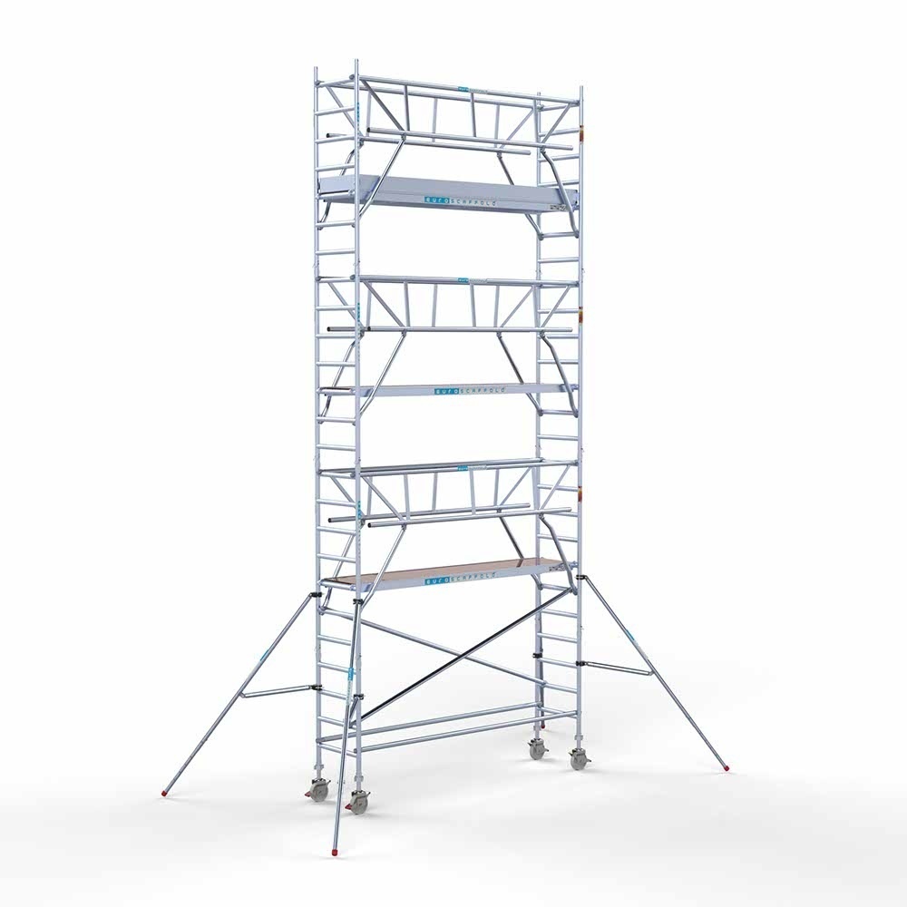 - Das Rollgerüst ist aus hochwertigem, leichtem Aluminium gefertigt, so dass der Aufbau ein Kinderspiel ist und der Materialtransport für die aufbauende Person keine Belastung darstellt.