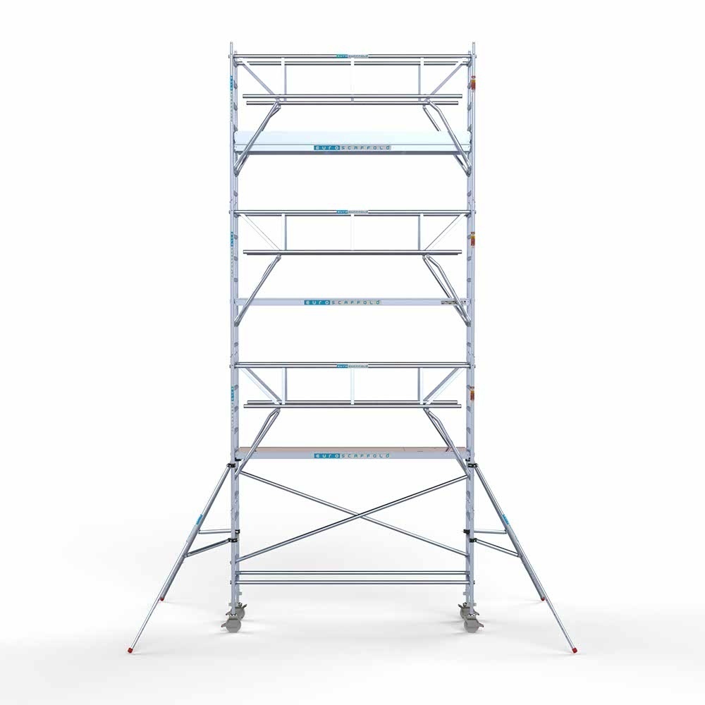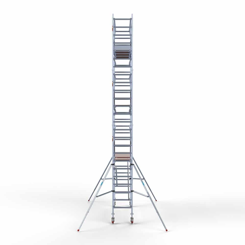 Dieses komplette professionelle Rollgerüst entspricht der neuen Norm 2018, einschließlich Montagesystem mit Frontgeländer. Mit diesem Montagesystem sind Sie während des Auf- und Abbaus vor der Gefahr eines Absturzes geschützt. Dieses Rollgerüst garantiert eine einfache Handhabung, eine sehr lange Lebensdauer, ist direkt ab Lager lieferbar und wird in den Niederlanden und Belgien kostenlos versandt.