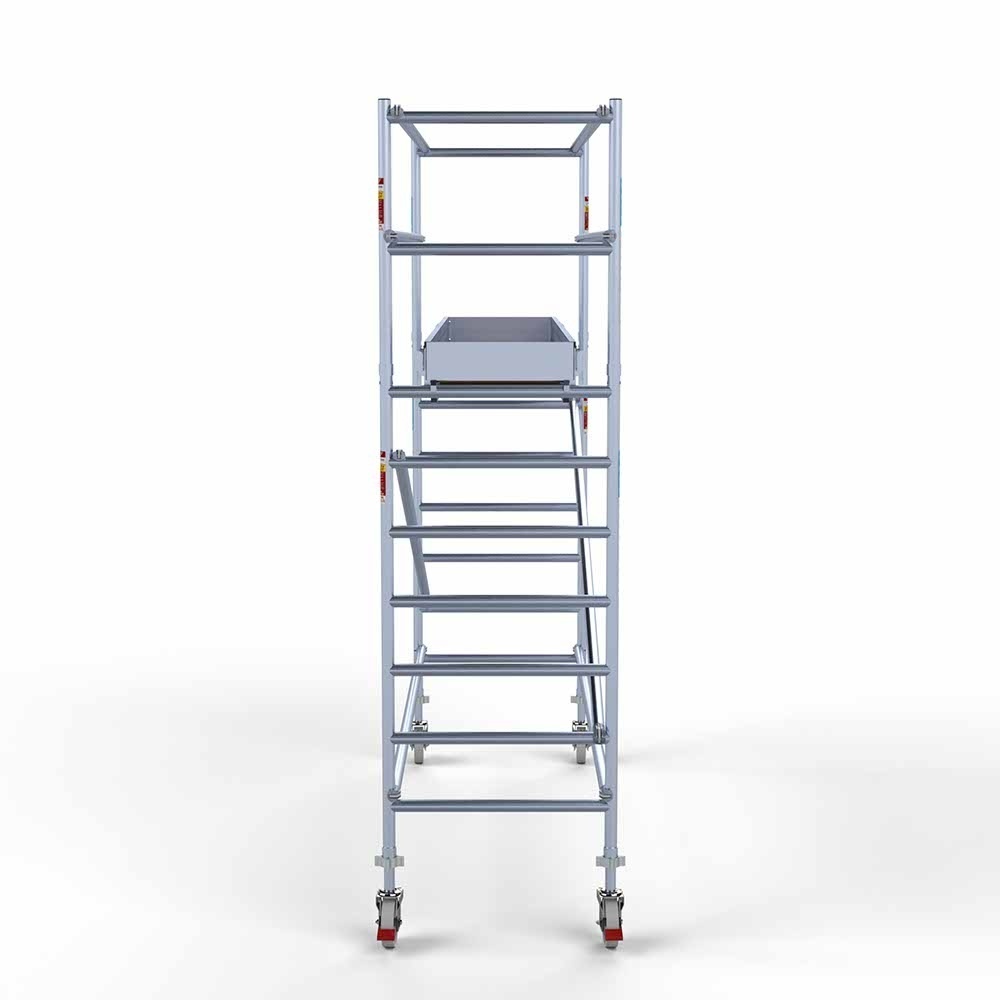 - Das Rollgerüst ist aus hochwertigem, leichtem Aluminium gefertigt, so dass der Aufbau ein Kinderspiel ist und der Materialtransport für die aufbauende Person keine Belastung darstellt.