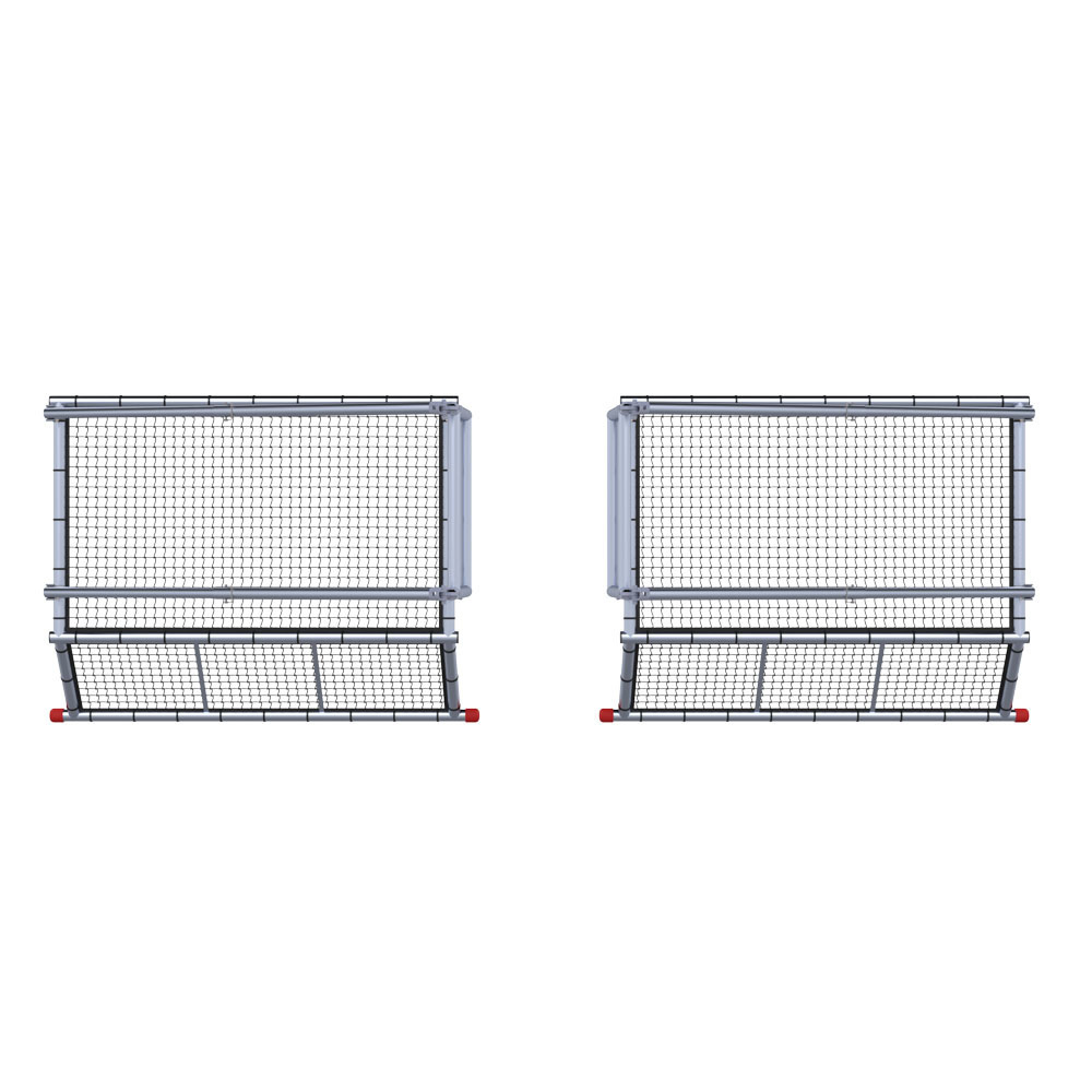 Das Geländer für das Schrägdachsystem besteht aus zwei Geländern, die an der Außenseite eines ordnungsgemäß errichteten Gerüsts angebracht werden. Das linke und das rechte Element werden in der Dachrinne abgestützt und mit Gerüstkupplungen an der Innenseite des Gerüsts befestigt. Dank der beiden Geländerelemente sind Sie auf dem Schrägdach auf einer Breite von 6 Metern vor Stürzen geschützt.