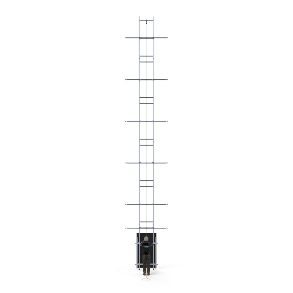 Der Solarlift hat eine Arbeitshöhe von 12,2 Metern, das ist die Höhe, in der Sie arbeiten können. Wir berechnen die Arbeitshöhe wie folgt: Plattformhöhe + Ihre eigene Körpergröße mit verstärkten Armen. Wir rechnen also mit etwa 2 Metern + Plattformhöhe. Die genaue Arbeitshöhe hängt von Ihrer eigenen Körpergröße ab und ist bei jedem Menschen anders.