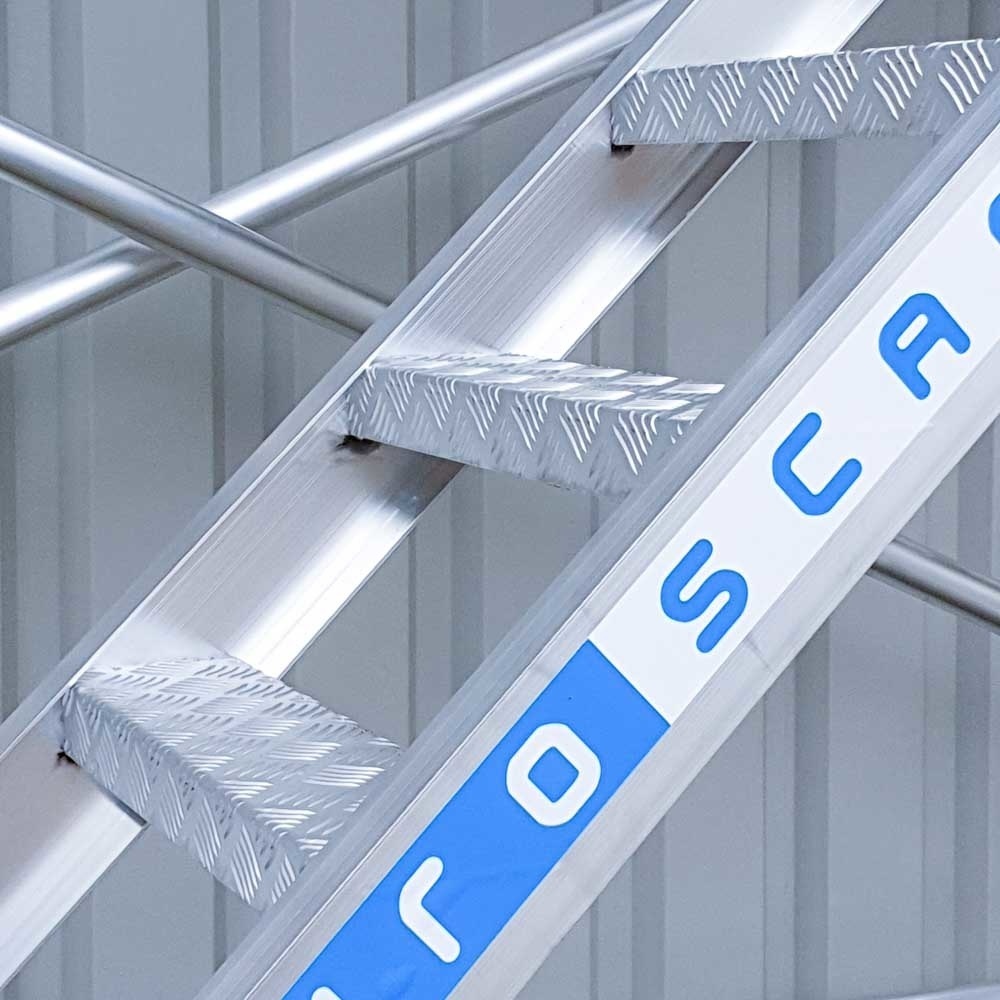 Noch nie war Arbeiten so einfach und sicher! Dieser Treppenturm ist aus hochwertigem Aluminium gefertigt und erfüllt alle Sicherheitsanforderungen und Arbeitsbedingungen. Der Rollgerüst-Turm eignet sich für den professionellen Einsatz und erleichtert das Besteigen mit Werkzeug und Material. Der Turm ist sehr stabil, leicht zu bewegen und einfach auf- und abzubauen.